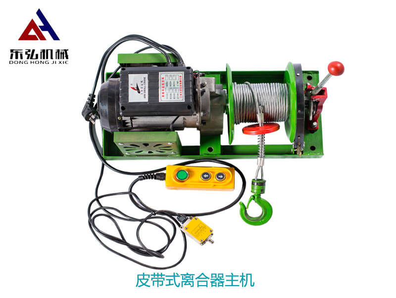 4、皮带式刹车,可在吊运工作中随吊随停,不会坠落,离合扳开快速下降,离合回位刹车制动,省时省电。