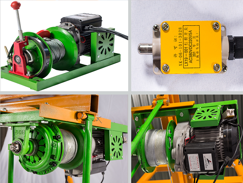 3、冲顶限位器,保障吊起物再冲顶时,自动断电,保护使用者安全。
